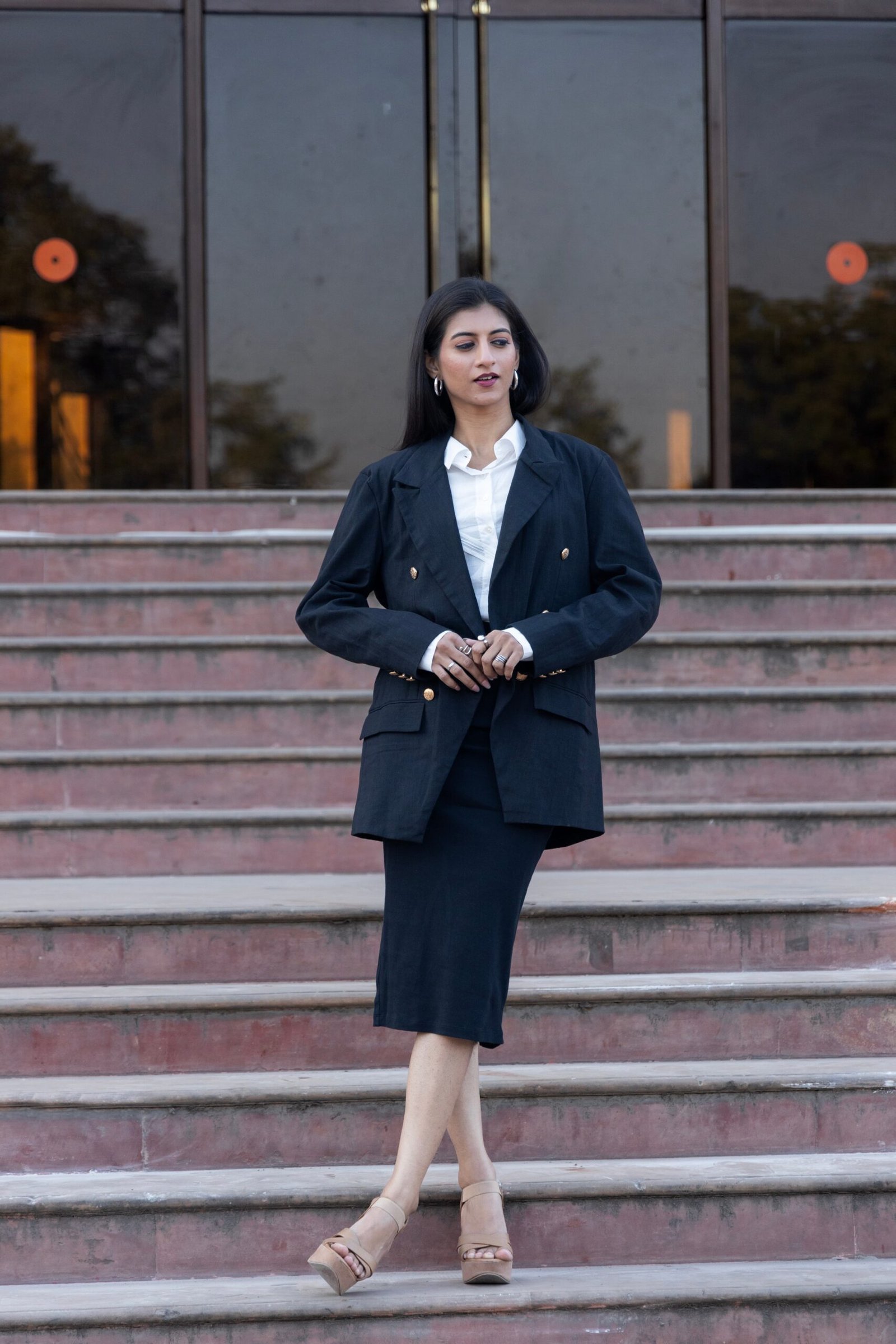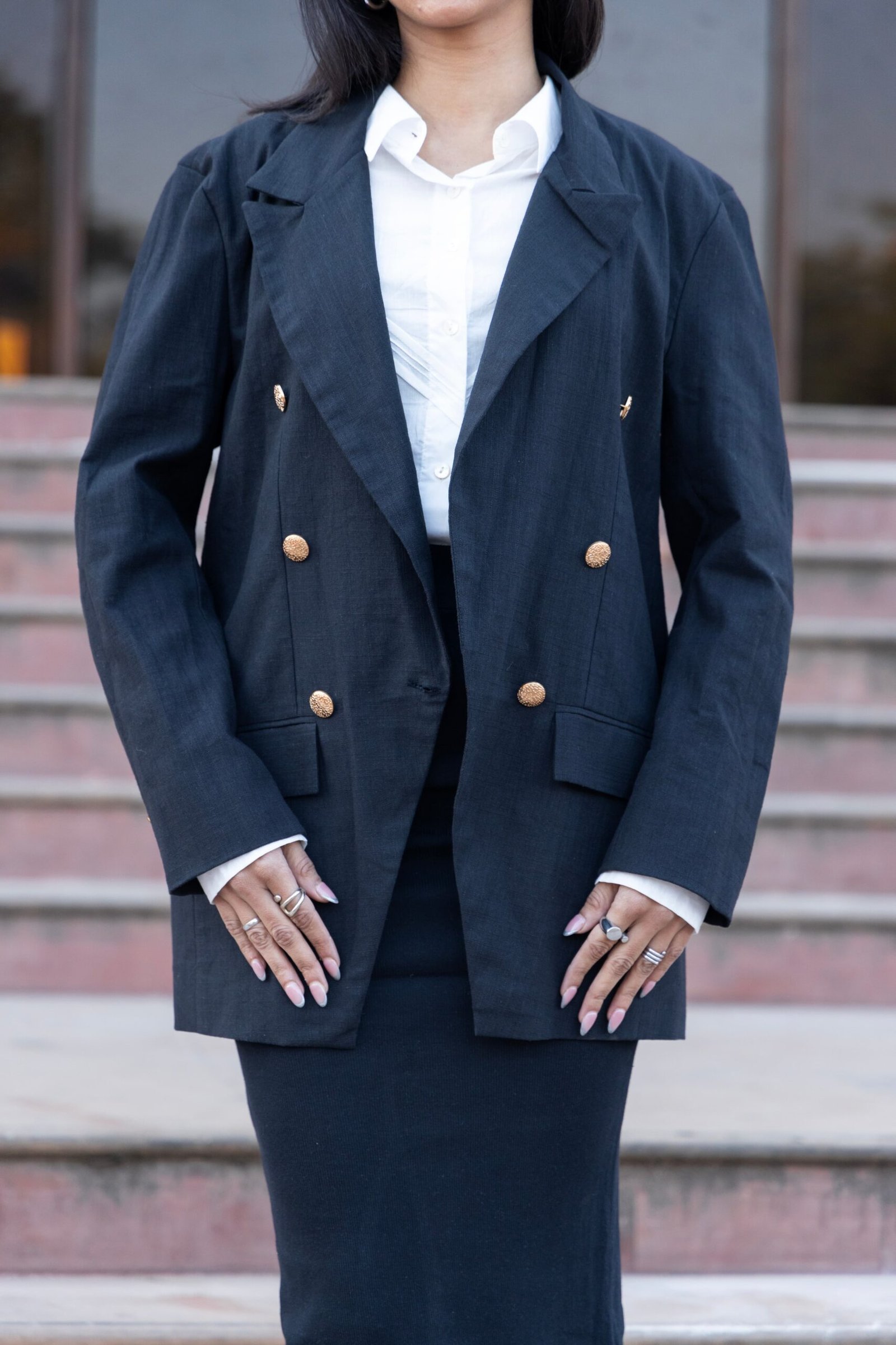 Tailored in a hemp–cotton blend, this black coat offers structure with breathability. Designed with a relaxed yet refined silhouette, it features a clean double-breasted front that elevates everyday dressing. A conscious essential that moves effortlessly from work to evening.