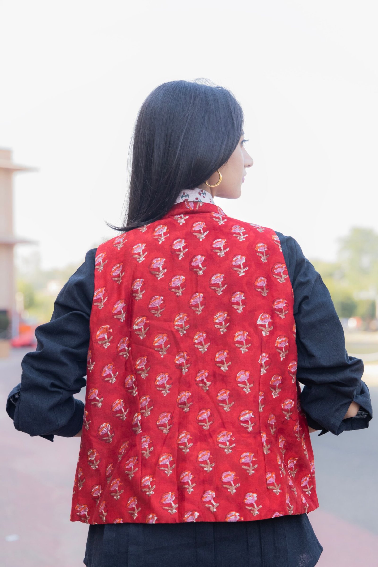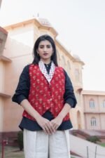 Be the first to review “Red Chanderi Half Jacket”